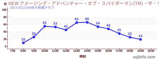 • NEW アメージング・アドベンチャー・オブ・スパイダーマン(TM)・ザ・ライド 4K3D$B$N(B2017年02月19日の待ち時間