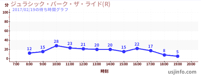 • ジュラシック・パーク・ザ・ライド(R)$B$N(B2017年02月19日の待ち時間