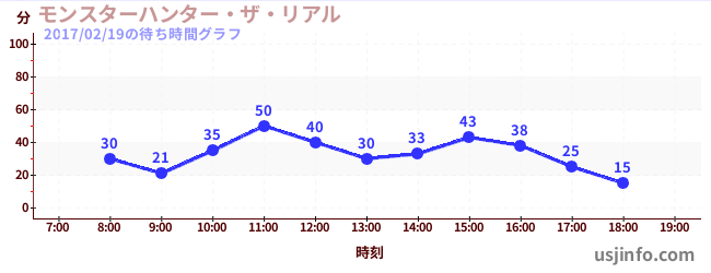 • モンスターハンター・ザ・リアル$B$N(B2017年02月19日の待ち時間