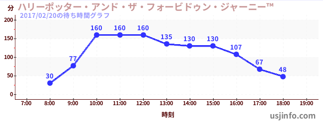 • ハリーポッター・アンド・ザ・フォービドゥン・ジャーニー™$B$N(B2017年02月20日の待ち時間