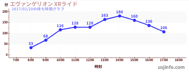 • エヴァンゲリオン XRライド$B$N(B2017年02月20日の待ち時間