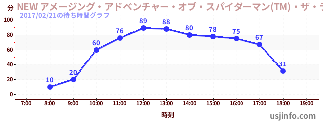 • NEW アメージング・アドベンチャー・オブ・スパイダーマン(TM)・ザ・ライド 4K3D$B$N(B2017年02月21日の待ち時間
