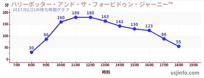 • ハリーポッター・アンド・ザ・フォービドゥン・ジャーニー™$B$N(B2017年02月21日の待ち時間