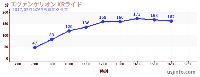 • エヴァンゲリオン XRライド$B$N(B2017年02月21日の待ち時間