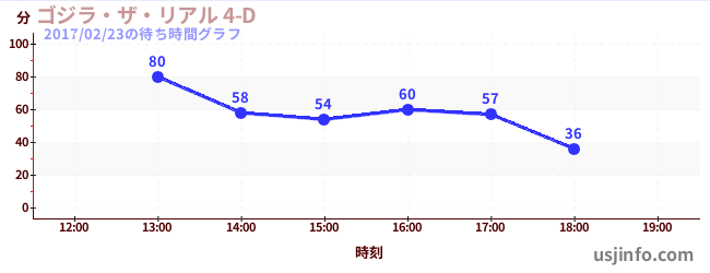 • ゴジラ・ザ・リアル 4-D$B$N(B2017年02月23日の待ち時間