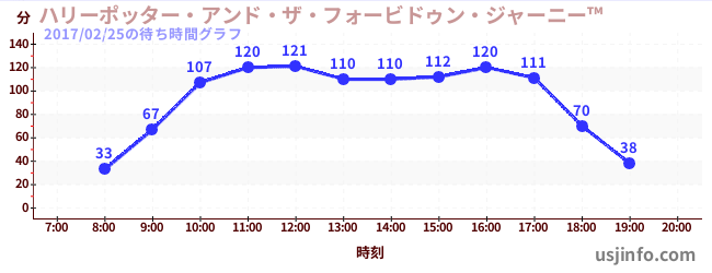 • ハリーポッター・アンド・ザ・フォービドゥン・ジャーニー™$B$N(B2017年02月25日の待ち時間