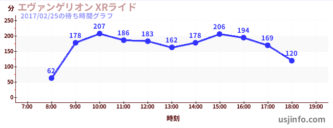 • エヴァンゲリオン XRライド$B$N(B2017年02月25日の待ち時間