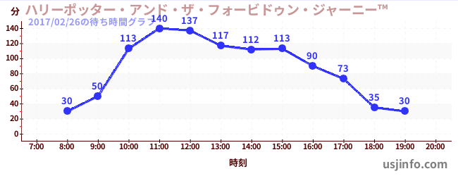 • ハリーポッター・アンド・ザ・フォービドゥン・ジャーニー™$B$N(B2017年02月26日の待ち時間