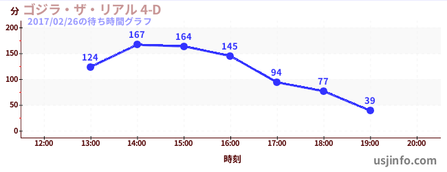 • ゴジラ・ザ・リアル 4-D$B$N(B2017年02月26日の待ち時間