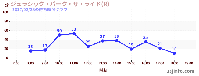 • ジュラシック・パーク・ザ・ライド(R)$B$N(B2017年02月28日の待ち時間