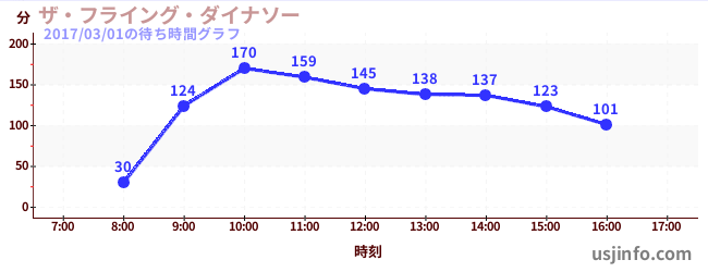 • ザ・フライング・ダイナソー$B$N(B2017年03月01日の待ち時間