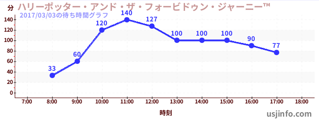 • ハリーポッター・アンド・ザ・フォービドゥン・ジャーニー™$B$N(B2017年03月03日の待ち時間