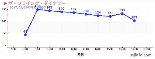 • ザ・フライング・ダイナソー$B$N(B2017年03月03日の待ち時間