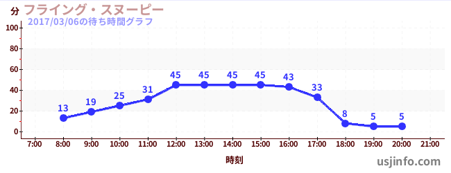 • フライング・スヌーピー$B$N(B2017年03月06日の待ち時間