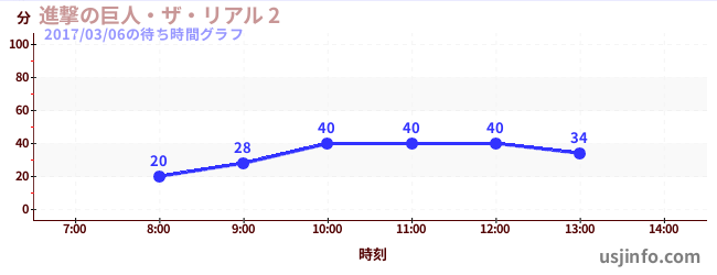 • 進撃の巨人・ザ・リアル 2$B$N(B2017年03月06日の待ち時間