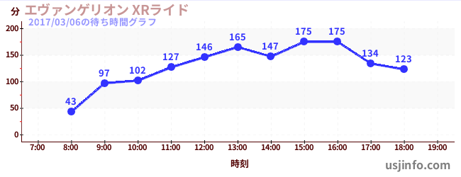 • エヴァンゲリオン XRライド$B$N(B2017年03月06日の待ち時間
