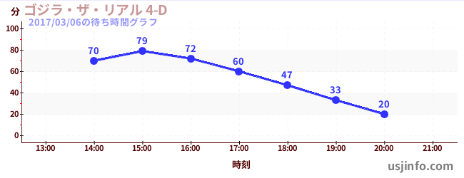 • ゴジラ・ザ・リアル 4-D$B$N(B2017年03月06日の待ち時間