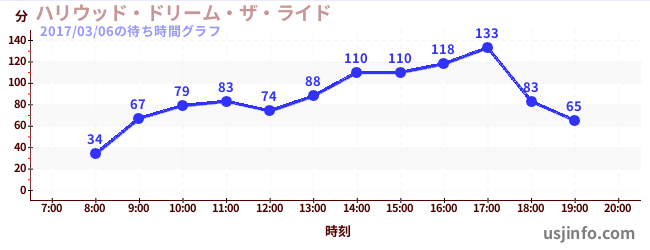 • ハリウッド・ドリーム・ザ・ライド〜バックドロップ〜$B$N(B2017年03月06日の待ち時間