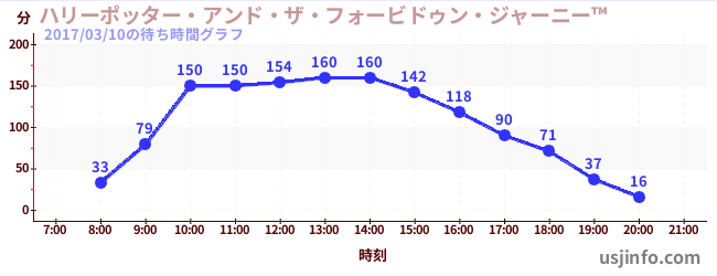 • ハリーポッター・アンド・ザ・フォービドゥン・ジャーニー™$B$N(B2017年03月10日の待ち時間
