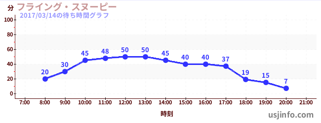 • フライング・スヌーピー$B$N(B2017年03月14日の待ち時間
