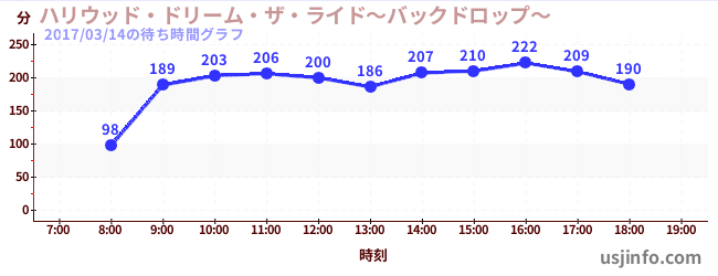 • ハリウッド・ドリーム・ザ・ライド〜バックドロップ〜$B$N(B2017年03月14日の待ち時間
