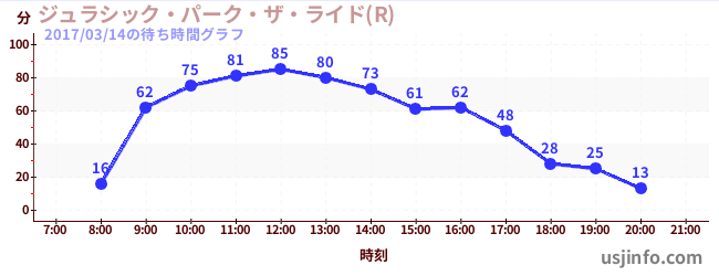 • ジュラシック・パーク・ザ・ライド(R)$B$N(B2017年03月14日の待ち時間