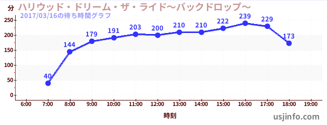 • ハリウッド・ドリーム・ザ・ライド〜バックドロップ〜$B$N(B2017年03月16日の待ち時間