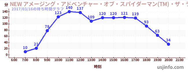 • NEW アメージング・アドベンチャー・オブ・スパイダーマン(TM)・ザ・ライド 4K3D$B$N(B2017年03月16日の待ち時間