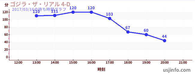 • ゴジラ・ザ・リアル 4-D$B$N(B2017年03月16日の待ち時間