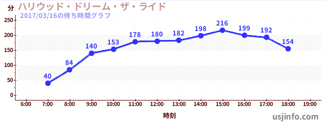 • ハリウッド・ドリーム・ザ・ライド$B$N(B2017年03月16日の待ち時間
