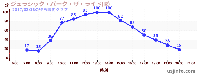 • ジュラシック・パーク・ザ・ライド(R)$B$N(B2017年03月18日の待ち時間