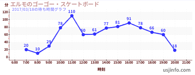 • エルモのゴーゴー・スケートボード$B$N(B2017年03月18日の待ち時間