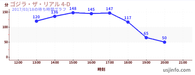 • ゴジラ・ザ・リアル 4-D$B$N(B2017年03月18日の待ち時間