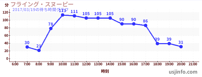• フライング・スヌーピー$B$N(B2017年03月19日の待ち時間
