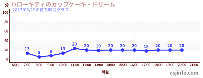 • ハローキティのカップケーキ・ドリーム$B$N(B2017年03月19日の待ち時間