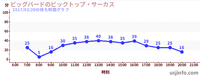 • ビッグバードのビックトップ・サーカス$B$N(B2017年03月20日の待ち時間