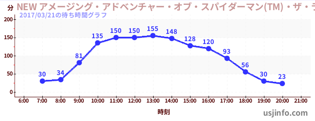 • NEW アメージング・アドベンチャー・オブ・スパイダーマン(TM)・ザ・ライド 4K3D$B$N(B2017年03月21日の待ち時間