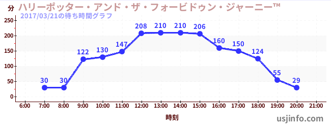 • ハリーポッター・アンド・ザ・フォービドゥン・ジャーニー™$B$N(B2017年03月21日の待ち時間
