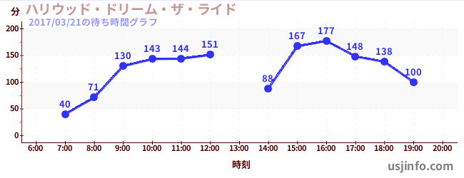 • ハリウッド・ドリーム・ザ・ライド$B$N(B2017年03月21日の待ち時間