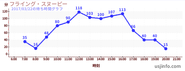 • フライング・スヌーピー$B$N(B2017年03月22日の待ち時間