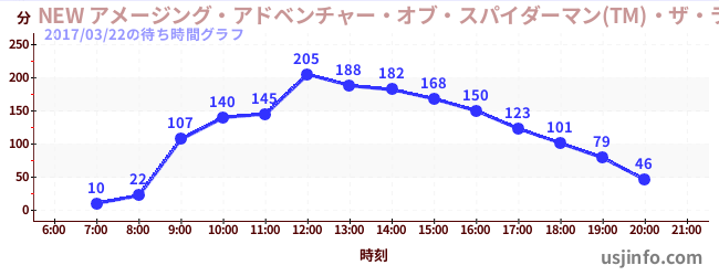 • NEW アメージング・アドベンチャー・オブ・スパイダーマン(TM)・ザ・ライド 4K3D$B$N(B2017年03月22日の待ち時間