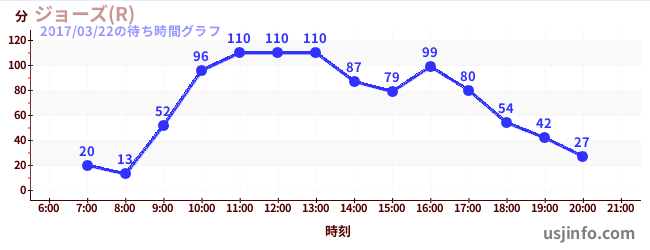 • ジョーズ(R)$B$N(B2017年03月22日の待ち時間