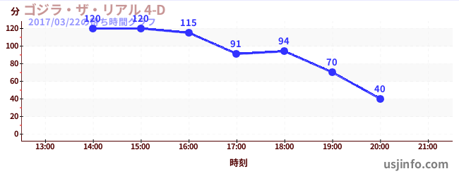 • ゴジラ・ザ・リアル 4-D$B$N(B2017年03月22日の待ち時間