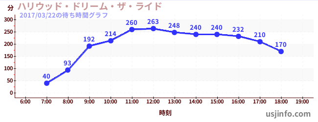 • ハリウッド・ドリーム・ザ・ライド$B$N(B2017年03月22日の待ち時間