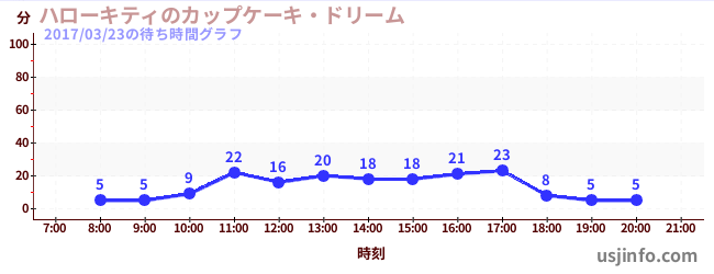 • ハローキティのカップケーキ・ドリーム$B$N(B2017年03月23日の待ち時間