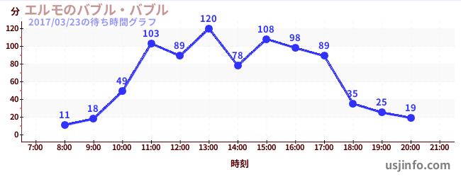 • エルモのバブル・バブル$B$N(B2017年03月23日の待ち時間