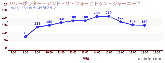• ハリーポッター・アンド・ザ・フォービドゥン・ジャーニー™$B$N(B2017年03月27日の待ち時間