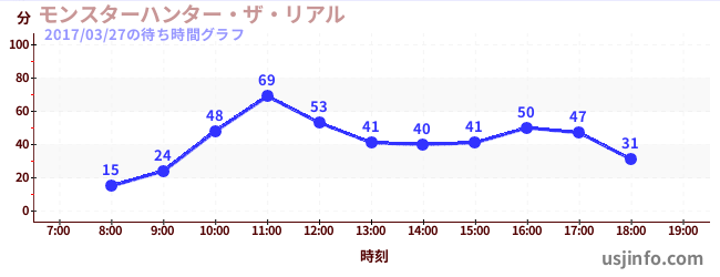 • モンスターハンター・ザ・リアル$B$N(B2017年03月27日の待ち時間
