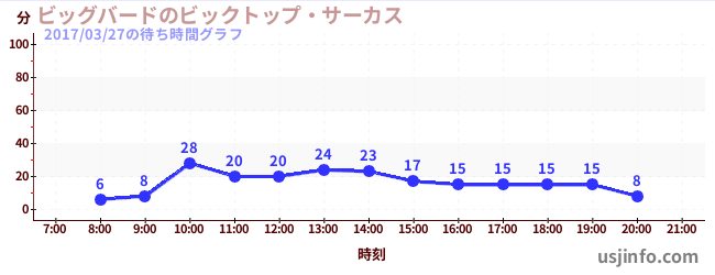 • ビッグバードのビックトップ・サーカス$B$N(B2017年03月27日の待ち時間