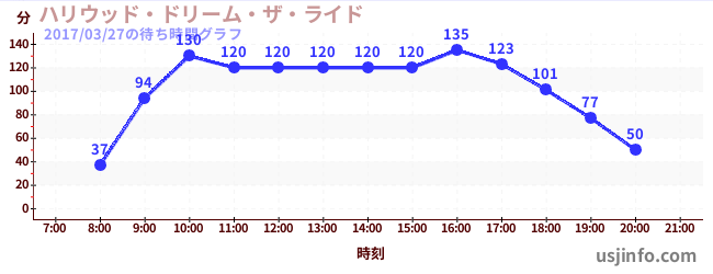 • ハリウッド・ドリーム・ザ・ライド〜バックドロップ〜$B$N(B2017年03月27日の待ち時間